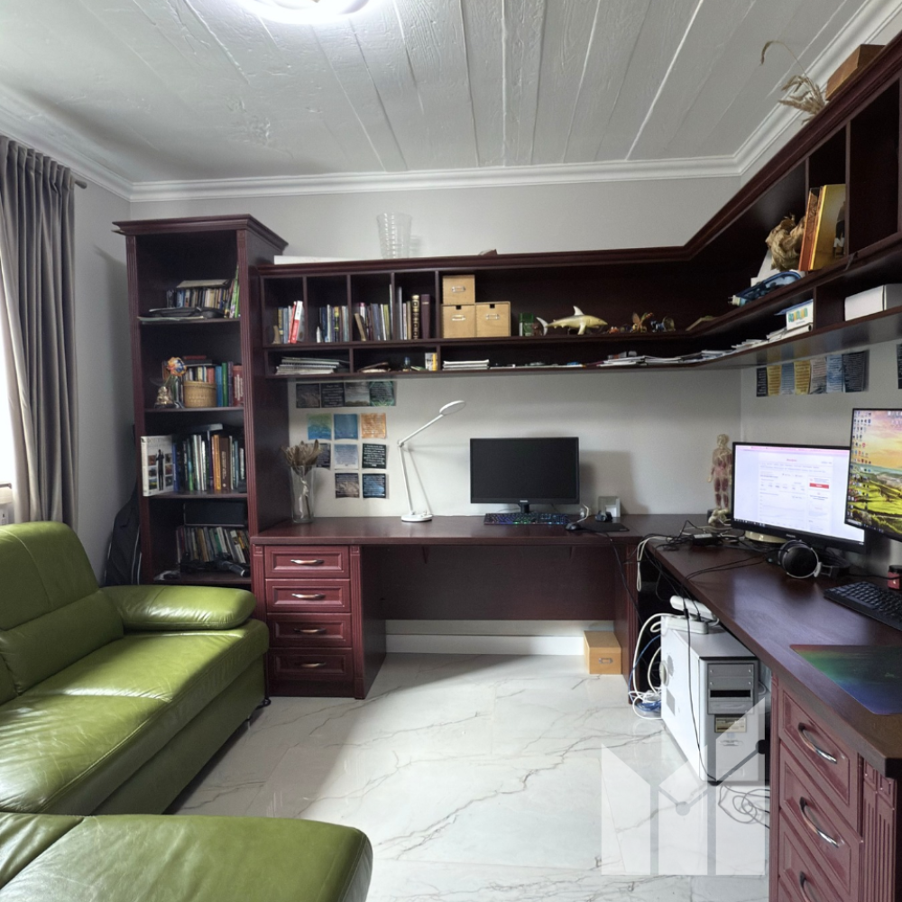 • 1 поверх: коридор, кабінет, кухня-вітальня (є місце під камін), санвузол, котельня